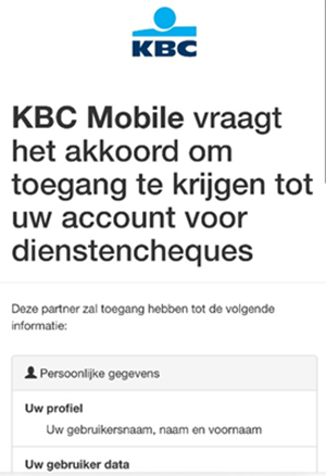 - L'application mobile KBC vous demande votre autorisation pour accéder à votre compte Pluxee pour les titres-services.